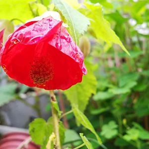 アブチロン 昨日1滴の💧しずくが😊 思わず📱撮りました。