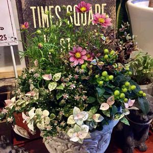 こんにちは☀️ お天気もいいので、フル回転でガーデニングとお洗濯、のはずが、原因不明の脇腹痛で鎮痛剤飲みながら、よっこらしょと💦 普段、元気なだけに病や痛さには耐性がなく、げんなりしておりますが、台風の前にどうしてもこれだけは、、。 と、不慣れな寄せ植えですが、冬に室内に避難する子たちをひとまとめ🌱 ブーケから挿し木のドラセナ×2 挿し木のポインセチア×2 挿し木のプレクトランサス って挿し木ばっかり💦ェェ 一緒にしていいものやら、さっぱりわかりませんが、とにかくやってみました。 そして室内に持ち込むには鉢がかわいくないので、鉢カバーをなんとかせねば、、とここで午前中終了。 一休みしてまた午後にがんばります🎵