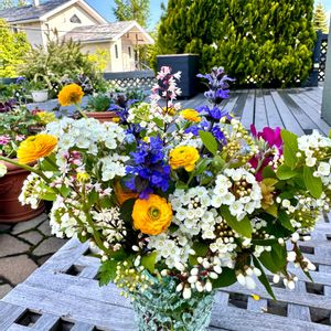 今日のお花「コデマリ」 あと二ヶ月くらいで満開を迎えます 𓂃.𓈒𖡼𓂂𓏲𓆸܀𓂃.𓈒𖡼𓂂𓏲𓆸܀𓂃.𓈒𖡼𓂂𓏲𓆸܀ ①高さ11cmのフラワーベースで 小さなブーケのようです ②6月の中旬の庭 奥に「コデマリ」が見えますか? ③④「コデマリ」が満開の頃 ピンクのクレマチスが咲き始めて コラボします𓂃 𓈒𓏸❁⃘ 今年も、コラボが見れたらなぁ〜 ♪ ∧∞∧ ( ´∀` ) ♪ ♪ と ⊃ (_ニつ ⌒⌒ (ノ楽しみです