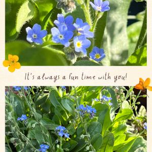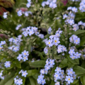 おはようございます😊 今日のお花…忘れな草です。 雨風に遭ってちょっと痛んでいますが、ふんわり満開🙌🩵🩵🩵 かわいいお花が小梅ガーデンに優しい色を添えています😊 ありがと〜ね😊