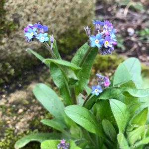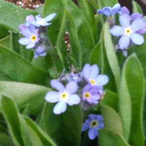 勿忘草 庭にポツポツ咲いてたら綺麗だなと思ってたくさん苗を買ってしまった〜 零れ種で増えたらいいなー