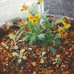 こんにちは、まだまだ朝晩寒いですね😓 半月くらい前のハンギングです、少し伸びてきました🌸 控えめな忘れな草が可愛いです💕