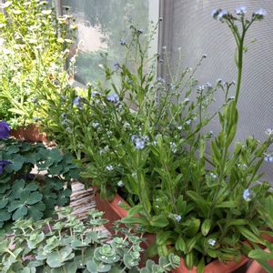 フォーゲット・ミー・ノット (忘れな草🌱✨) 地味かもしれないけど、とても可愛らしく小さなお花が沢山咲いてくれてます✨ 今だったらペチュニア等の主役級の存在感があるお花も良いですけど、こうした縁の下の力持ちタイプのお花も好きです😉👍