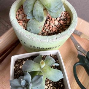 おはようございます😊 『毎月13日と14日は葉挿しの日』に参加させていただきます💕 葉挿しが苦手な私ですが、葉挿しっ子が可愛くなってきました🤗 お一人様にしたり、寄せ植えにしたりと楽しめそうです💗 先日お迎えしたサンア 象牙がお★様になっていました😭残念😢😢😢