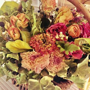 頂いたお花達を簡単に枯らしては💦と‥何もわからないままドライにして‥また見てほしいって籠に戻しているそうです❣️感謝の気持ち伝えたい想いなのでしょう🥰少し心も成長してるかな‥💕