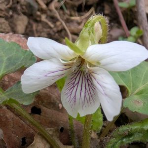 葉はたくさん出てましたが、花が咲いてる株は少しでした♪ ヒカゲスミレ(日陰菫) スミレ科 スミレ属 多年草 北海道、本州、四国、九州に分布。 低山や山地の樹林内のやや湿り気のある場所に生育。 葉は卵形から長卵形、縁は低い鋸歯。 表面は鮮緑色、褐色を帯びることもある。裏面は淡緑色、両面にやや粗い毛がはえる。 花柄は屈毛が生える。 花は約2cm、白色で上弁、側弁、唇弁ともに紫色の筋がはいる。 距は太い円筒形。側弁基部に毛があるがまれに無毛。 花柱はカマキリの頭形。 花期4〜5月 4月20日撮影 白河市 天狗山