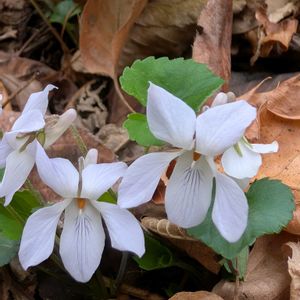 いつ見ても可愛いですね♪ フイリフモトスミレ(斑入麓菫) スミレ科 スミレ属 多年草 本州(宮城県以西)、四国、九州に分布。 丘陵、山麓の日当たりのよい場所に生育。 葉は長さ1〜1.5cmの卵形。白い斑が入る。形は変化が多い。 葉裏は紫色を帯びる。 花柄は暗褐色。 花は直径約1cm、白色、唇弁に紫色〜赤紫色の筋が入り、唇弁の先が普通尖る。 側弁基部は有毛。 距は紫色を帯びる。 花期4〜5月 ⑤花を撮るのに夢中で葉裏を撮るのを忘れましたが、なんとか葉裏が写った1枚です。 4月22日撮影 白河市 天狗山 🏷️フモトスミレファンクラブ誘っていただきました