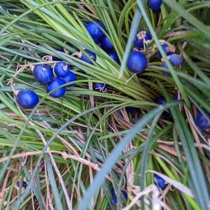 畑の虎の尾。手で探ってみたら、青い粒がぎっしりでした。