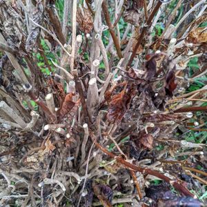 畑にある紫陽花が枯れかかりました。寒さの前までは、大丈夫でしたが、気温低下が原因かも?春に再生してくれたらと、願うばかり😭