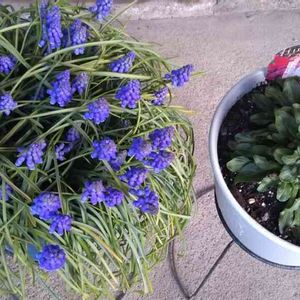 毎年咲いてくれるムスカリと今年初めて見つけた大輪のデイジーです💠
