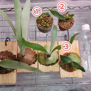 ベイチーの子株を適当に板付けしました。左のやつ多分向き間違えてるかも(笑) その次に、ペットボトルで管理していたベイチーの胞子体?1つが、大きくなったので植木鉢に植え替えました。 これが大きくなったらまた板付けと、、、。😁