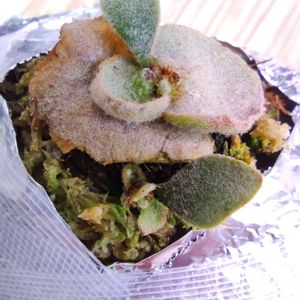 お早うございます!ベイチー子株三銃士(4つ居る)です! 一つは板付けしています。乾燥しないように全てアルミで包んでビニール袋をかぶせて管理中。 板付けのは生長点が確認できたので良きタイミングで向きを直そうと思っていますが、さらに小さい子株もいるので切り離すタイミングが難しい。切り離したら枯れちゃうかもしれないし様子見です。 他2株も生長点は生きているのでなんとか持ちこたえてほしい所!