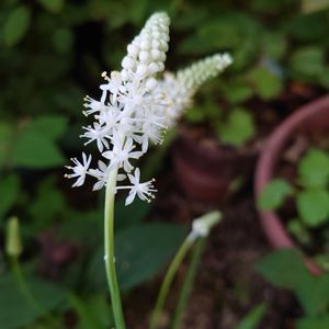 白花蔓穂 シロバナツルボ キジカクシ科 ツルボ属 分布 北海道南西部 本州 四国 九州 琉球列島 在来種 花期 8〜9月 春に伸びた葉は夏に枯れ、開花期には新たに数枚の葉が根元から出てその葉の間から花茎が延びてくる。 ・6枚の花被片があり小さな星形をしている。 雄蕊6本、雌蕊1本。 ・蒴果の中には黒く光沢のある細長い種子がある。 ・球根は有毒 種からの栽培で2年目。昨年より小振りです。 ✨キラキラ、小さいけれどとても美しい