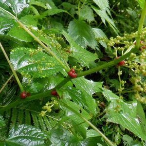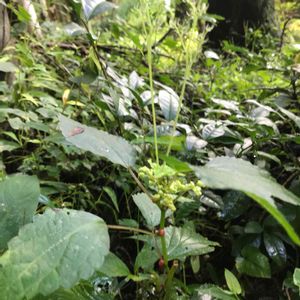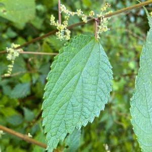 雨上がりにアカソに似た葉を見つけましたが時期と花の咲き方が違います まだ咲き始めなのかよくわからないのですが上部には雌花、下部には雄花が咲くカラムシでしょうか? ゴンゴンさんにムカゴイラクサと教えて頂きました ※イラクサ科ムカゴイラクサ属 花期 8〜9月 雌雄異株 葉腋にムカゴが付く事でわかりました