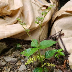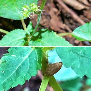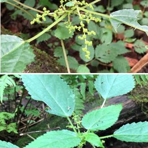 7/18 筑波山 これは多分「ムカゴイラクサ」ですね、雄花花序がついています。もっと大きくなりますがこれは小さかった。 雌雄同株で雌花花序は尖った姿で上につきますが、むかご共々まだのようですね🤔
