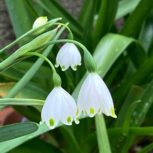 おはようございます😊 今日のお花に似た 💠スノーフレーク💠 ヒガンバナ科の植物の1つ。 和名はオオマツユキソウ(大待雪草) 別名はスズランスイセン(鈴蘭水仙) スズランのようなベル形の花を下向きに咲かせる。 過去pic です。 3枚あります🌿 ܸ 見てくださいね😊🎶💕︎