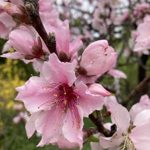 おはようございます😊 今日のお花 💠モモ 💠🍑🎎 モモとお雛様🎎のコラージュです。 花博記念公園鶴見緑地にて 昨年のpicです🍀 4枚あります🎎🍑 見てくださいね😊🎶💕︎