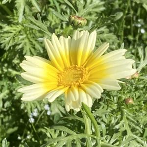 おはようございます😊 今日のお花 💠シュンギク 💠 昨年3月 職場の畑で 過去picです🌼🌿 ܸ 3枚あります🌿 ܸ 見てくださいね😊🎶💕︎