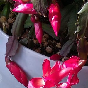 新年早々花を開かせたシャコバサボテン。なんて遅い開花なんでしょうか 昨年の花終わりの始末が間違っていたのではないかと大変心配しましたが、無事に開花して安心しました。