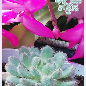 💙セトーサ💙 スカイブルーで白い産毛がキュートな子💙💠✨ 後ろは3年目のジャコバサボテンが満開です🍀💗✨