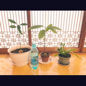 2020/10/15 大集合〜! 左から アボカド2号(ぼーちゃん) アボカド3号 アボカド1号(あーちゃん) ジャコバサボテン アボカド3号 子宝草 ぼーちゃんの葉っぱは下向き、 あーちゃんの葉っぱは横向き、 植物にも個性があるんだな〜という発見💡 ちなみにアボカド3号がふたつありますが、予定では芽が出た順に かーちゃん どーちゃん と名付けるはずでしたが 同日に植えて発芽も近かったのでどっちがどっちかわからなくなって名前が付いていません。 そろそろ個性が出てきたので命名しようと思います笑