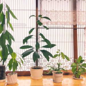 2020/3/29 左から アボカド1号(あーちゃん) アボカド2号(ぼーちゃん) ジャコバサボテン 後から植えたぼーちゃんが、あーちゃんを追い越しました!ぼーちゃんの成長が早い早い!
