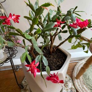 ジャコバサボテン メルカリ で抜き苗購入しめした。 花が咲いて綺麗で💖 お迎えしたけど、あっち向いてホイの子たちを植えるのに苦労しました。 土は初めましての方からの購入。水捌けがよくて、土動きがないと言われたが、本当に動かずでした^ - ^ 🌿は相変わらず あっち向いてホイ🤗 まだ、寝てる子もいます。枯れてクシャクシャになった子は✂️✂️✂️ 今、こんな感じですが ジャコバサボテン🌵に詳しい方へ このまま様子見で良いでしょうか? 教えて下さい🤗
