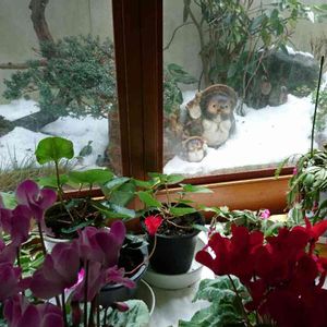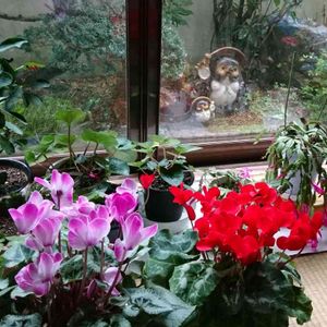 おはようございます。 デンマークカクタス。 八重咲きと、 ジャコバサボテンのピンク。 蕾が、膨らみ始めましたので、部屋の中に、入れました。 シクラメンを、移動させて置きました。まず