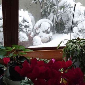 ぽん吉ぽん太が 雪に埋もれてしまいそう。 冬に逆戻り。