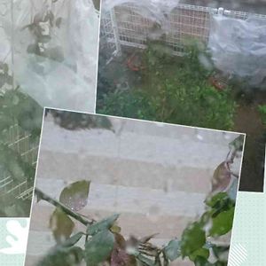 画像は9月30日17:10分 徳島県北部 私の台風対策 結果… 55点という所でしょうか(^_^;) 中央の画像は つるバラパレードの新しいシュート 麻ひもで4本の枝を束にして 針金の誘引に固定していましたが 束ごと折れ… 左上は ピエールドゥロンサール トレリスに被せたポリビニール 紐でくくりつけていましたが 破れています しかし21号の時は 葉っぱが全部ちぎれ 裸苗になっていたので まだマシかなという程度 右上は 恋心と紫雲さん 恋心(左)のビニールは こちらも紐で結びつけていた部分から破れ バンザイ状態 紫雲(右)の方はまだ耐えています ビニールの中で 昨日蕾だった子が 咲いています あーしかし まだまだ甘かった…😭