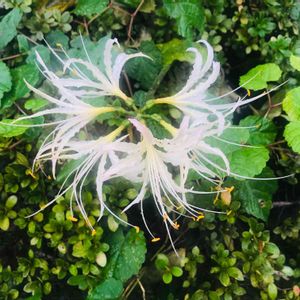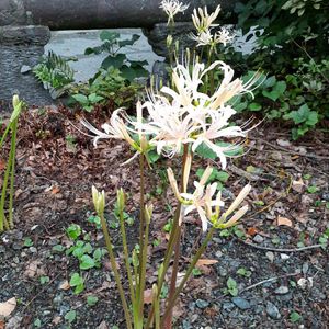 白花曼珠沙華 リコリス🌱 久しぶりの本降りの雨の中 気持ちよさそうに開きました