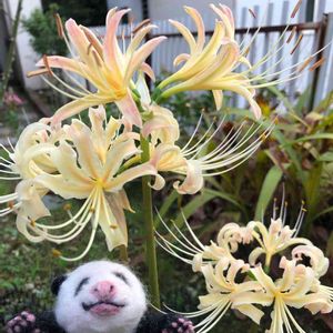 我が家のシャンシャンです。 お庭の白い彼岸花。 白花曼珠沙華って言うんだって。🐼