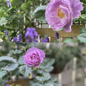 こんばんは😊 ブルーフォーユー💙💜 昨日と今日のお顔💕 ベンチに誘引してあるので 座って香りをたっぷり楽しめます🥰