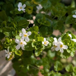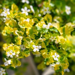 バコパ ライムバリエガータ 斑入りのバコパに小さな花が咲きました♪ 斑入りの葉っぱがきれいです!
