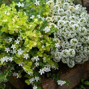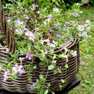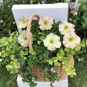 ペチュニアの寄せ植え🌼🧺🍀 斑入りバコパと、クリーピングタイムを入れました🌿