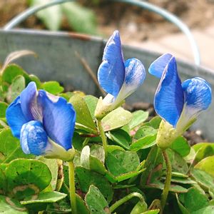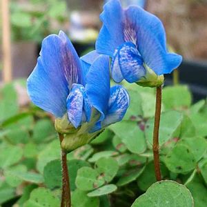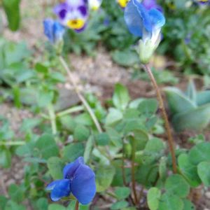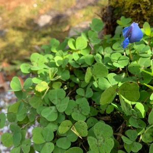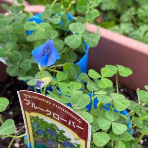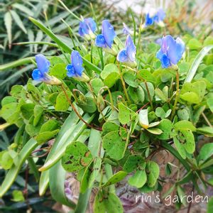 ブルーオキザリス。 タグ表記はブルークローバー。 豆系のお花ですが、葉はクローバーの形。 青に惹かれてお迎えしました。 下の方に隠れてなっていた実も、ちゃんと豆でした。