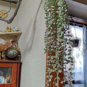 いずれハンギングにするつもりで、いったんベンチに控えてもらっていたディスキディア・ヌンムラリアが、まーのびのびと伸び放題❗️ Met Galaのレッドカーペットに登場する女優のドレスを彷彿とさせる。 隣りのグリーンネックレスも負けじと伸びる。 「ベンチでの控えが続いてすまんね」 「いや、いつなんどきでも貢献出来るよう、ウォーミングアップとイメージトレーニングは欠かしてませんよ」 ディスキディア・ヌンムラリアは優等生の回答。人物が出来ている。