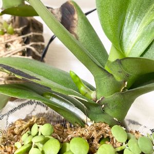 おはようございます☀️ 今日から2月ですね❣️ 11月半ばに花芽を発見した胡蝶蘭🌱 2カ月半でだいぶ伸びましたが、開花は3月くらいかな❓ 本当ゆっくりで待ちくたびれてます😅 花芽を支柱で固定しました🌱