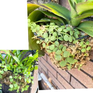 おはようございます☀ こちらは台風一過で風は強いですが気持ちの良い朝です 蘭と寄せ植えしたディスキディア・ヌンムラリアが網に引っかかってたのではずそうと思ったら、発根して水苔にしっかり着生してました🌱 一年近く培養土で育てて、全然育たないなぁと思っていましたが、水苔の方が好きだったのねと納得🤔 ハートジュエリーは勢いよく育ってますが、あんまり💚っほくない葉っぱです ディスキディアも種類によって成長に差がありますね🌱
