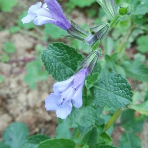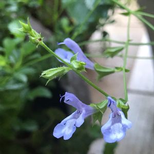 お庭でひっそり咲いてる サルビア アクアマリン 寄せ植えで使って 解体してお一人様の植木鉢育ち ポツリポツリと咲いています☺️ よ〜く見ると細かい毛が生えてるのね😁