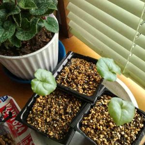 先日、あまりのモヤシっぷりに、亀甲竜ファンを不安のどん底に陥れたパピーダックJr.家の実生アフリカ亀甲竜ですが、とりあえず、実生箱から独立させて各自単独で様子を見ることにしました。 まずは、明るさに慣れさせるべく、徐々に窓際へ。(;^ω^) 真っ白だった彼らのボディーもうっすらと色づきました。先っちょの小さな葉っぱも、太陽の光を求めて東南を向いています。 まずは、ミドリの葉っぱを出して欲しいです~😀💦