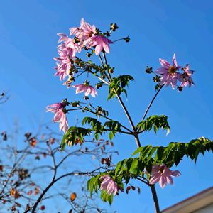 青空に映える皇帝ダリア 蕾がまだあります💮🩷💮💮💮💮💮 楽しめるわね🎶♪🎵 2️⃣オオニソガラム🌿 蕾が2個 3️⃣ 4️⃣ 同じ観賞用唐辛子から マッタク(´~`) 違う唐辛子👀‼️🌶️ 黄金伝説🧡💛 🏷️イロイロ付けさせて頂きます✨😌✨🙆😊