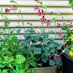 ペラルゴニウム シドイデス 小さめだけどシックな色のお花も シルバーリーフも 簡単に挿し芽で増えてくれる所も お気に入りです🎵