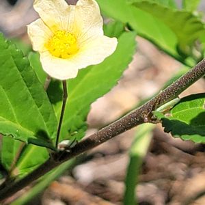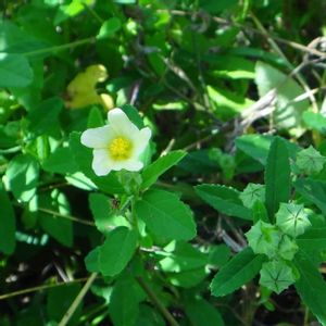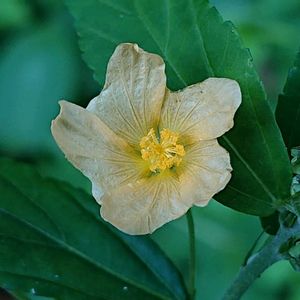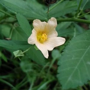 散歩道端に毎年咲きます。✨ 時間を気にしていかないと可愛いお花(1.5センチ位)に会えません😁 (お昼前後に開き2〜3時間で閉じてしまいます😥) キンゴジカ(金後時花) アオイ科 キンゴジカ属 熱帯アメリカ原産 関東以西に帰化