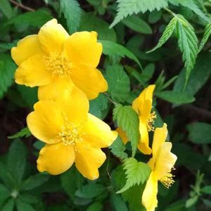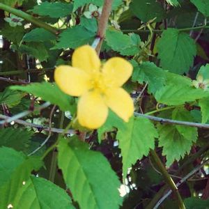 娘とうちの裏手を散歩して見つけました。 わたしが幼稚園児の頃に「オレンジシャーベットみたいで好き!」と思っていたヤマブキです。 緑地公園に誰かが植えたんでしょうね。 モリモリと大きく育っていました😃