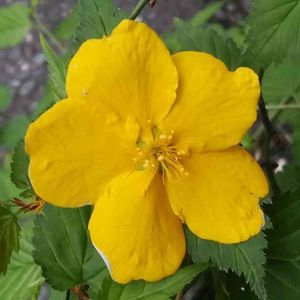 おはようございます😊 友人から物々交換で譲り受けた山吹💛 ポツンと咲きました🌸(^.^) ウンウン、ヤマブキ色だね👀💛 初めてみた~‼️