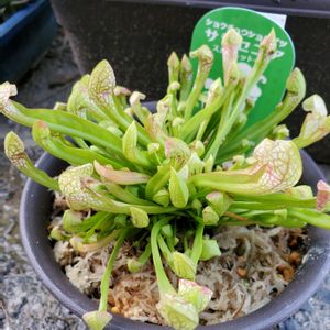 サラセニア スカーレットベルを購入。勢いありすぎて暴れエノキ(?)といった見た目 前々からサラセニアはじめ食虫植物が気になりつつも覚悟が決まらず…今年とうとう食虫植物再デビュー(子供時代に1回だけ、ハエトリソウを育てていた事はある) まずは枯らさないように頑張らねば