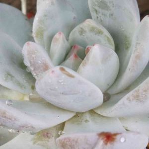 雨に当てたエケベリア・ラウリンゼさん😊 親御さん譲りの 美白に 爪先の紅色が映えてます😍💕