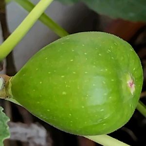 初めてのイチジク(無花果) なかなか大きくならなくて、最近1つづつ熟してきました、とても甘くて美味しいのですが、この寒さでは もう色付かないのかも…。