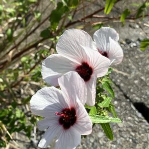 今日のお花 フヨウ 今朝 5時42分 ❶畑の傍にて 今日も暑くなりそうよ🥵 フヨウさんの会話が聞こえてきそうです。 ❷電柱と道路の僅かな隙間に根を下ろし,毎年花を咲かせています タカサゴフヨウ 別名;矢の根梵天花 アオイ科/フヨウ属 花の裏側のピンクの筋が綺麗💗 24/09/09 大宮花の丘農林公苑 ❸アメリカフヨウ 別名:クサフヨウ アオイ科/フヨウ属 草本の宿根草